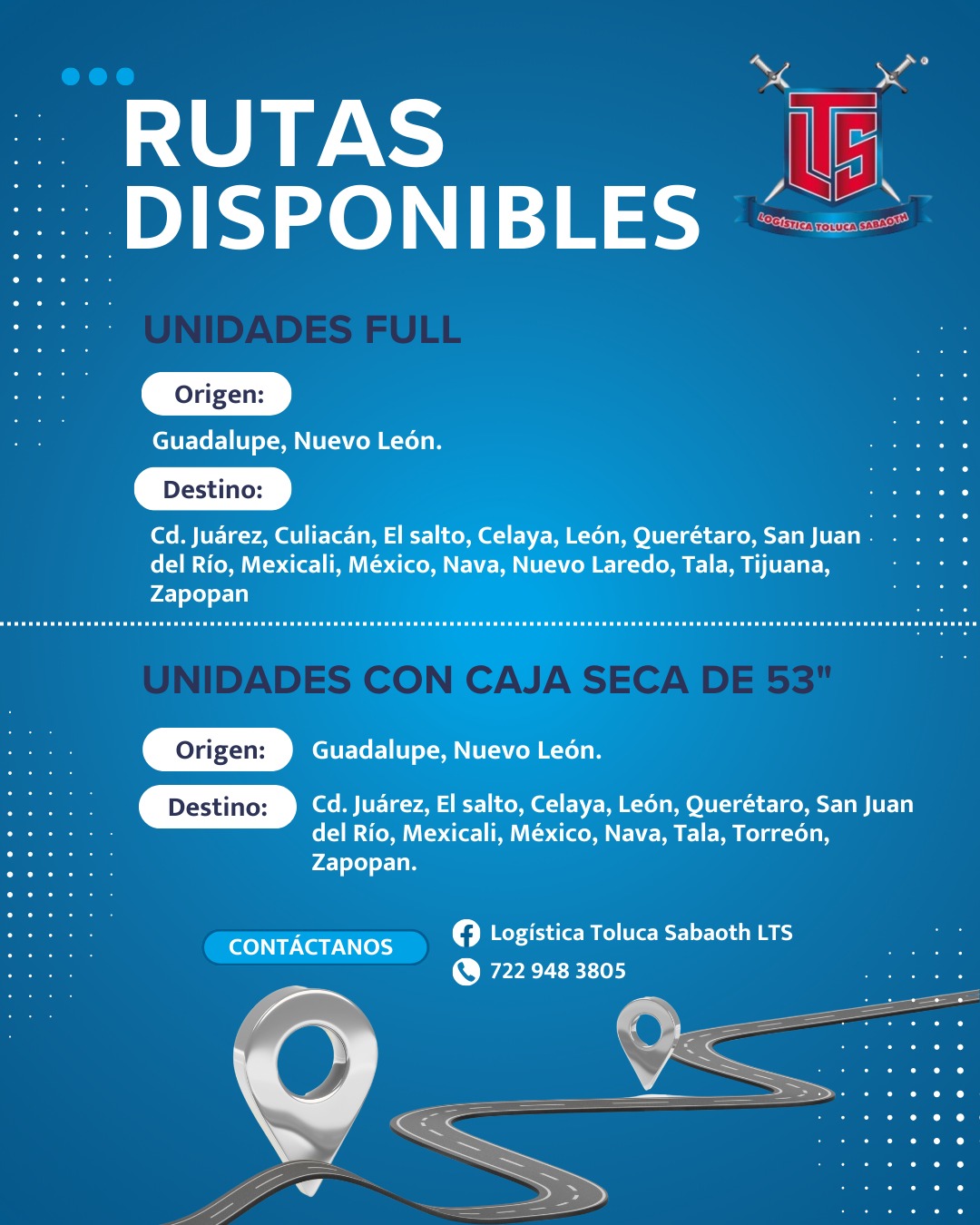 LTS es un operador logístico con amplia experiencia en el sector. Estamos en búsqueda de alianzas estratégicas con transportistas que cuenten con unidades propias, con el objetivo de fortalecer nuestra red logística y brindar un servicio más ágil, eficiente y flexible.